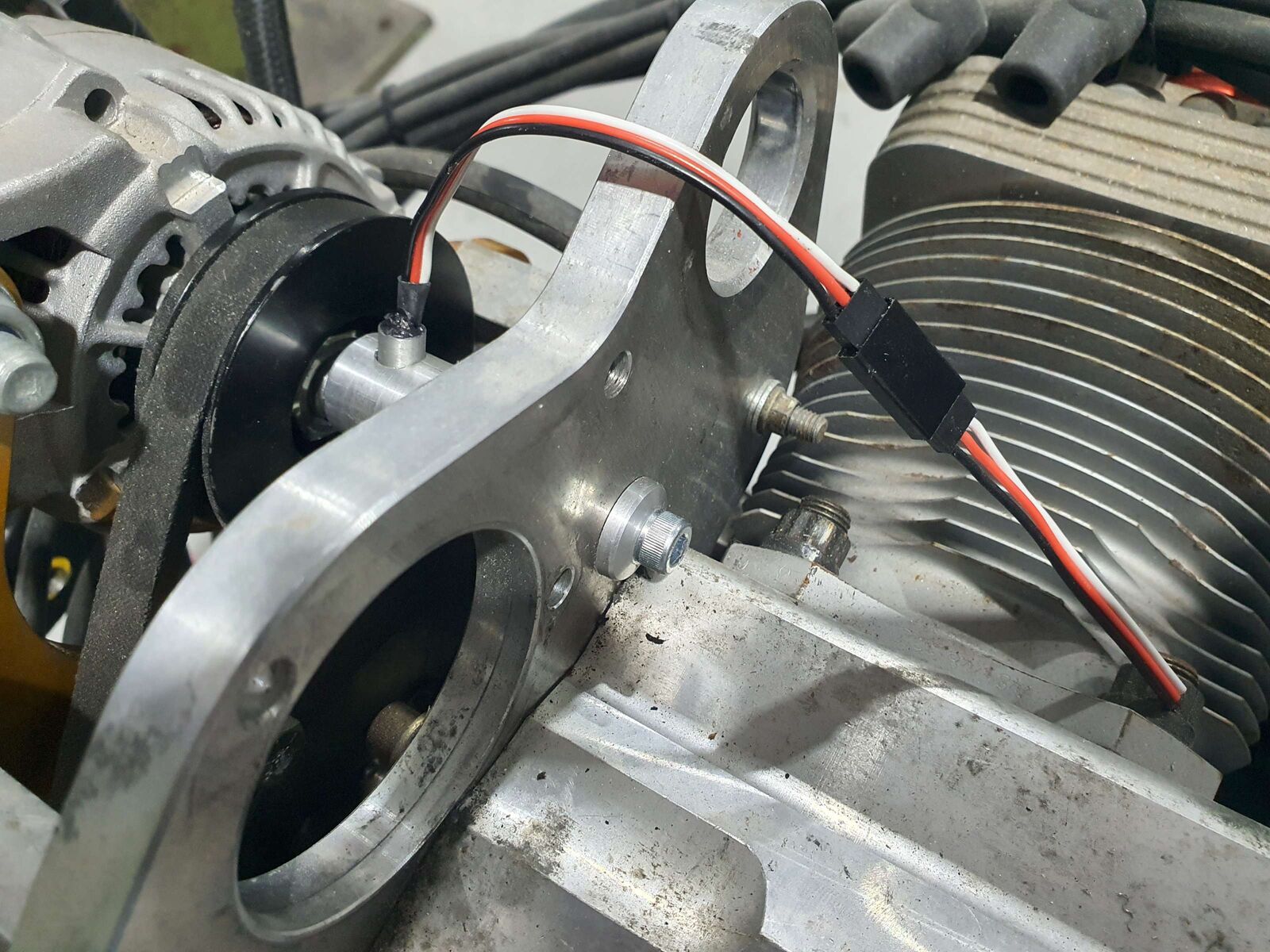 The factory Jabiru sensor relies on an extremely tight air gap to two small flywheel tabs. In service this setup is prone to misalignment, inconsistent signal quality, and intermittent tach readings.